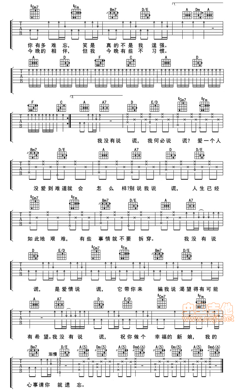 说谎(原版编配)吉他谱 - 吉他弹唱谱 - 原版