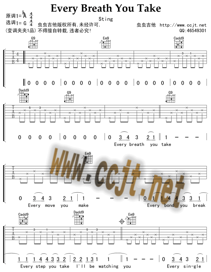 当前位置:琴谱网>吉他弹唱>Every Breath You Take