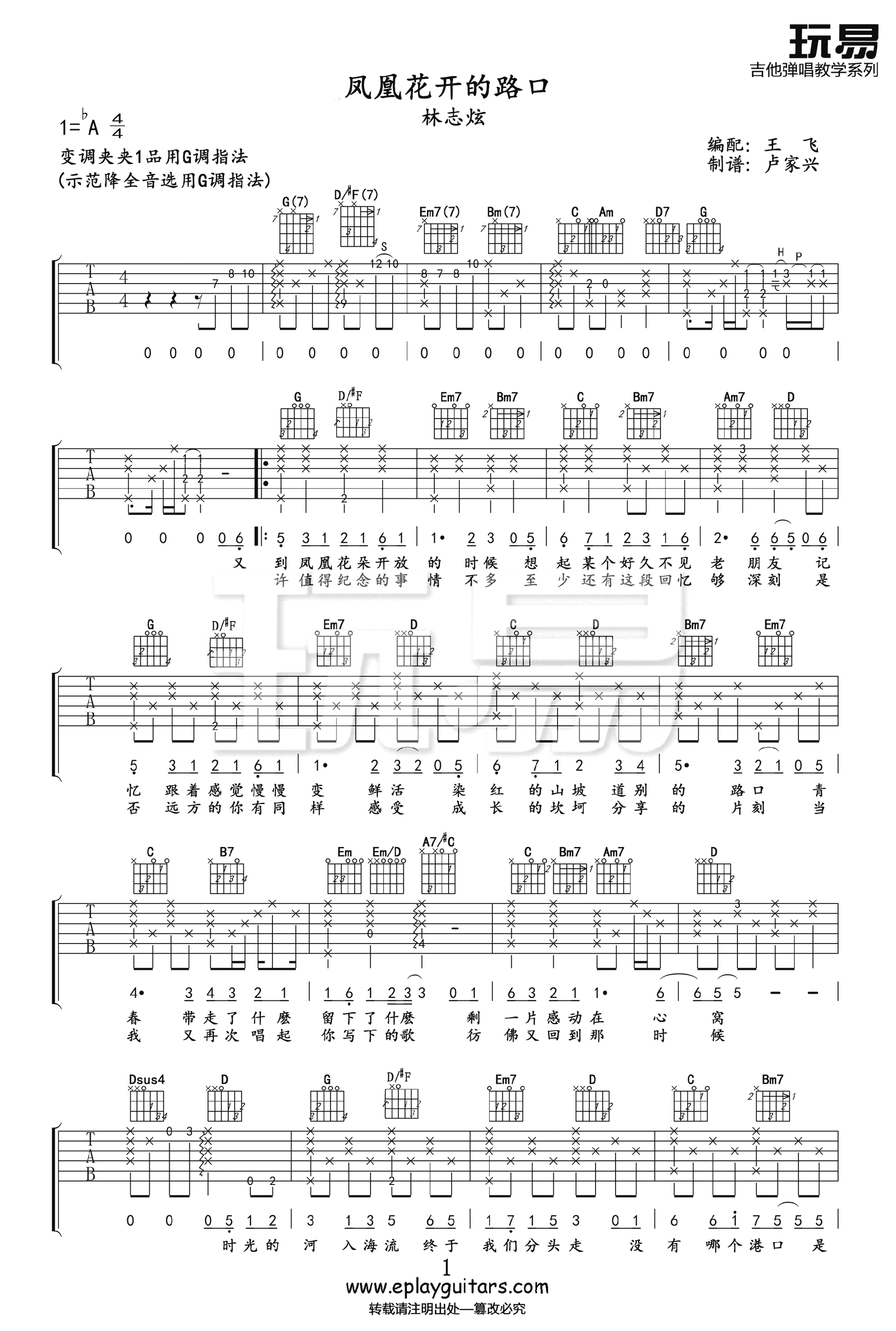 凤凰花开的路口吉他谱 - 林志炫 - 吉他弹唱谱
