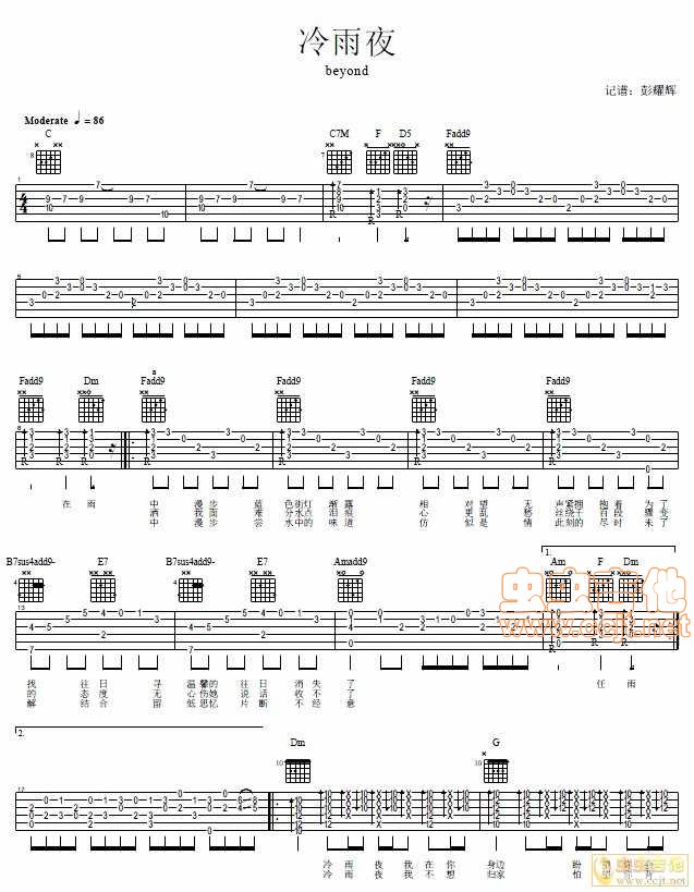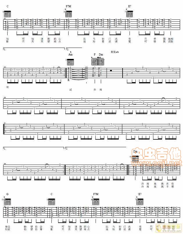 曲谱介绍: 《冷雨夜》吉他弹唱谱,共有3张高清图谱。