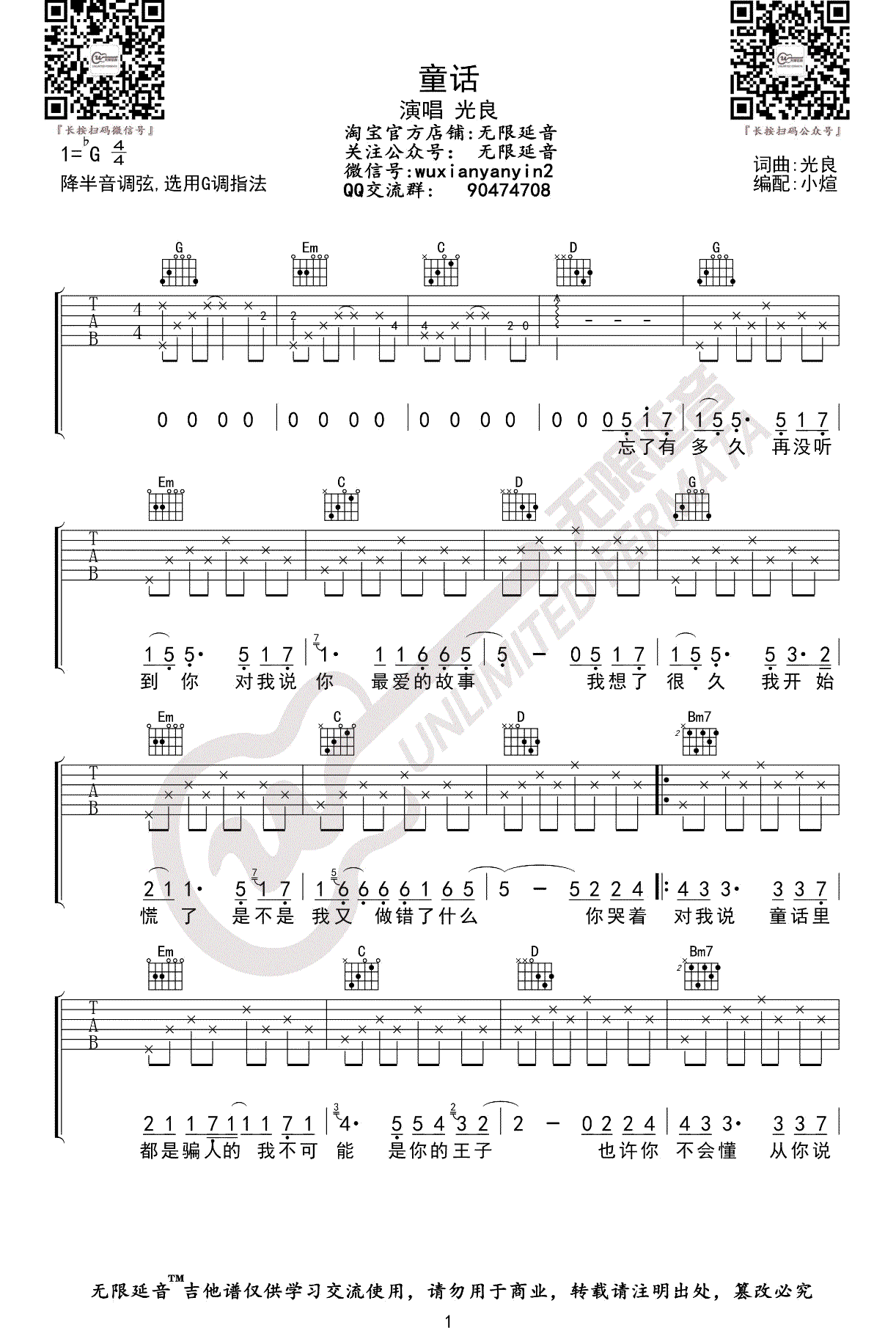 童话吉他谱 - 光良 - 吉他弹唱谱