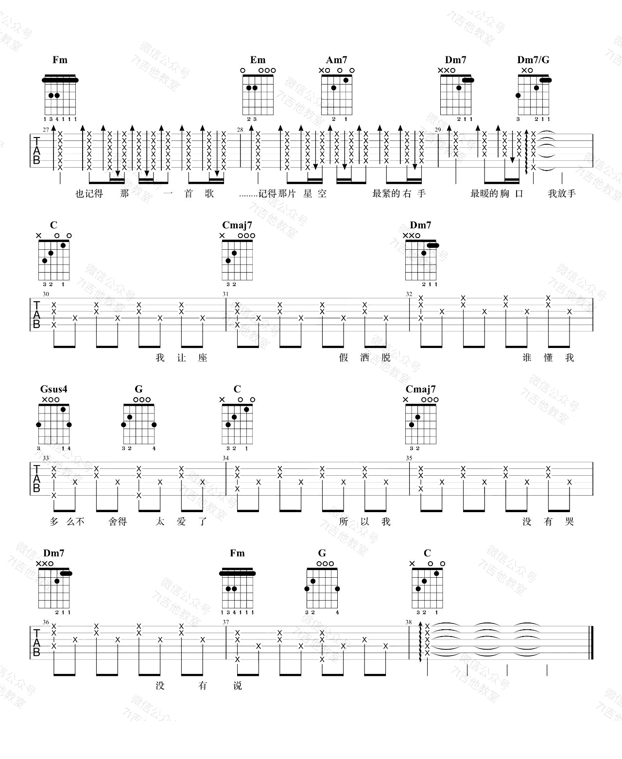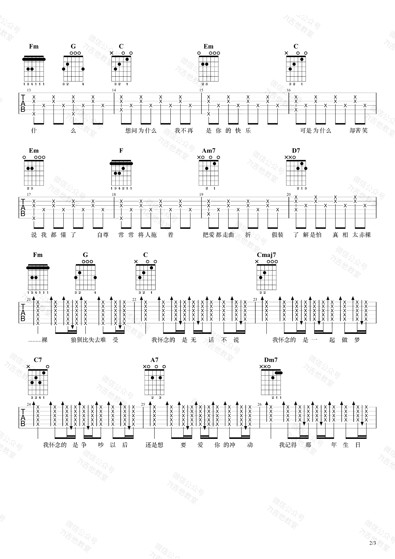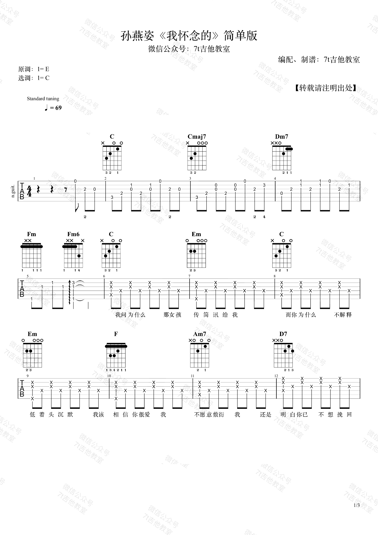 曲谱介绍: 《我怀念的》,孙燕姿的经典代表作品,我怀念的六线谱,女生简单版,三张图片谱。这首歌的原调是E大调,采用C大调的指法来编配,视频里是标准音调弦,变调夹夹在第4品,也就是原调。音域较高的男生也可以用这个谱子,不过建议少夹几品~ 感谢7T吉他教室编配,蜜汁叉烧肠弹唱演示,琴谱网网更新上传。