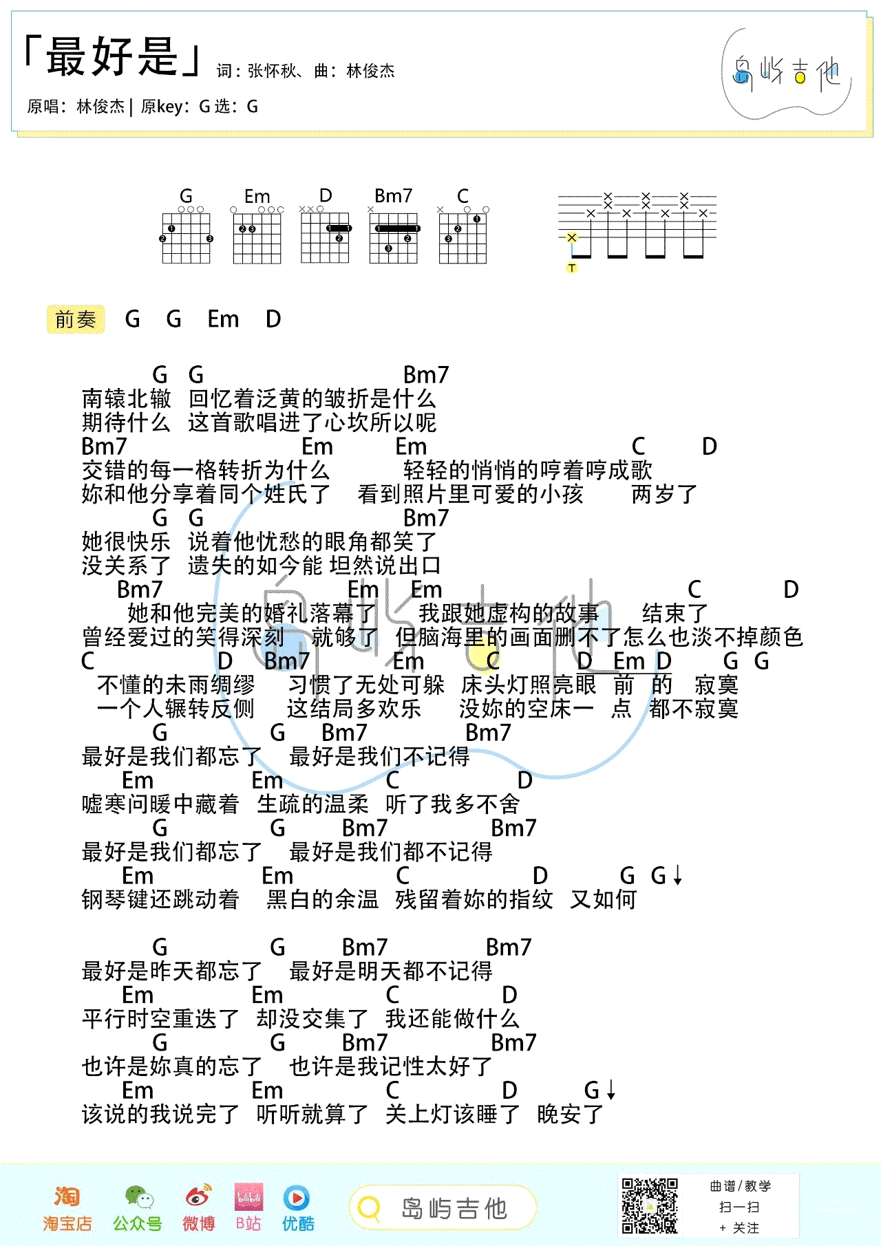 曲谱介绍: 林俊杰《最好是》吉他弹唱谱,共有2张高清图谱,免翻页排版设计。
