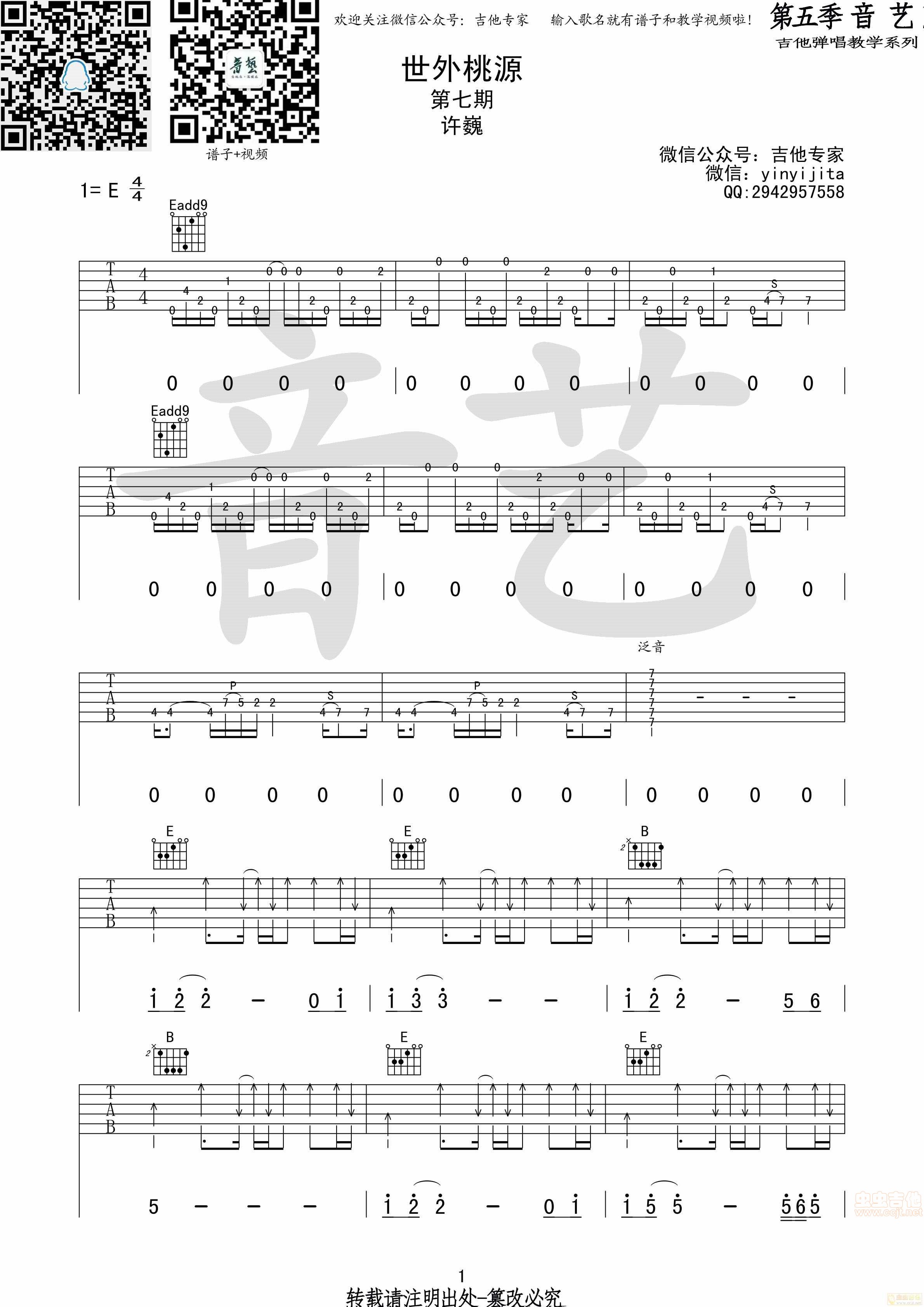 曲谱介绍: 世外桃源《世外桃源许巍原版》吉他弹唱谱原版,共有4张高清图谱。