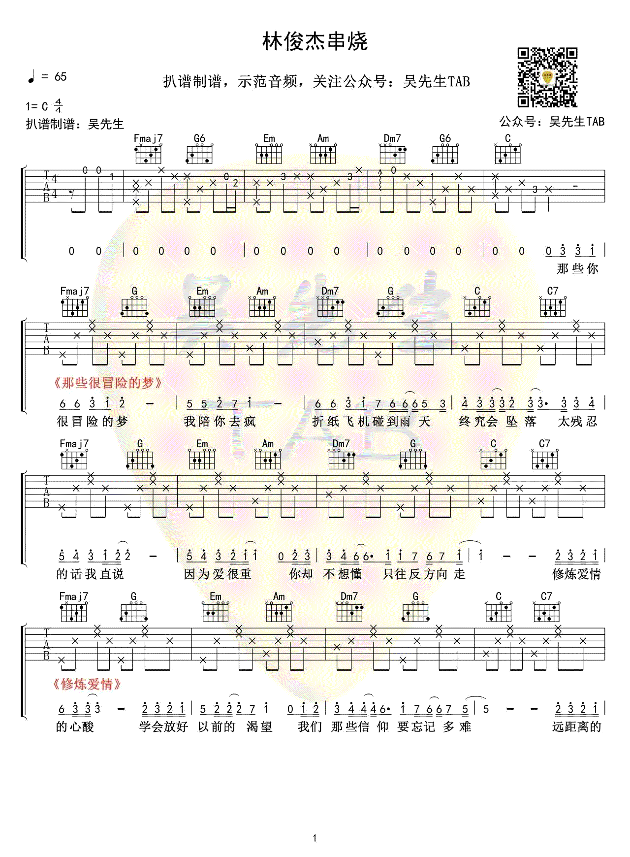 林俊杰串烧歌曲吉他谱 - 林俊杰 - 吉他弹唱谱