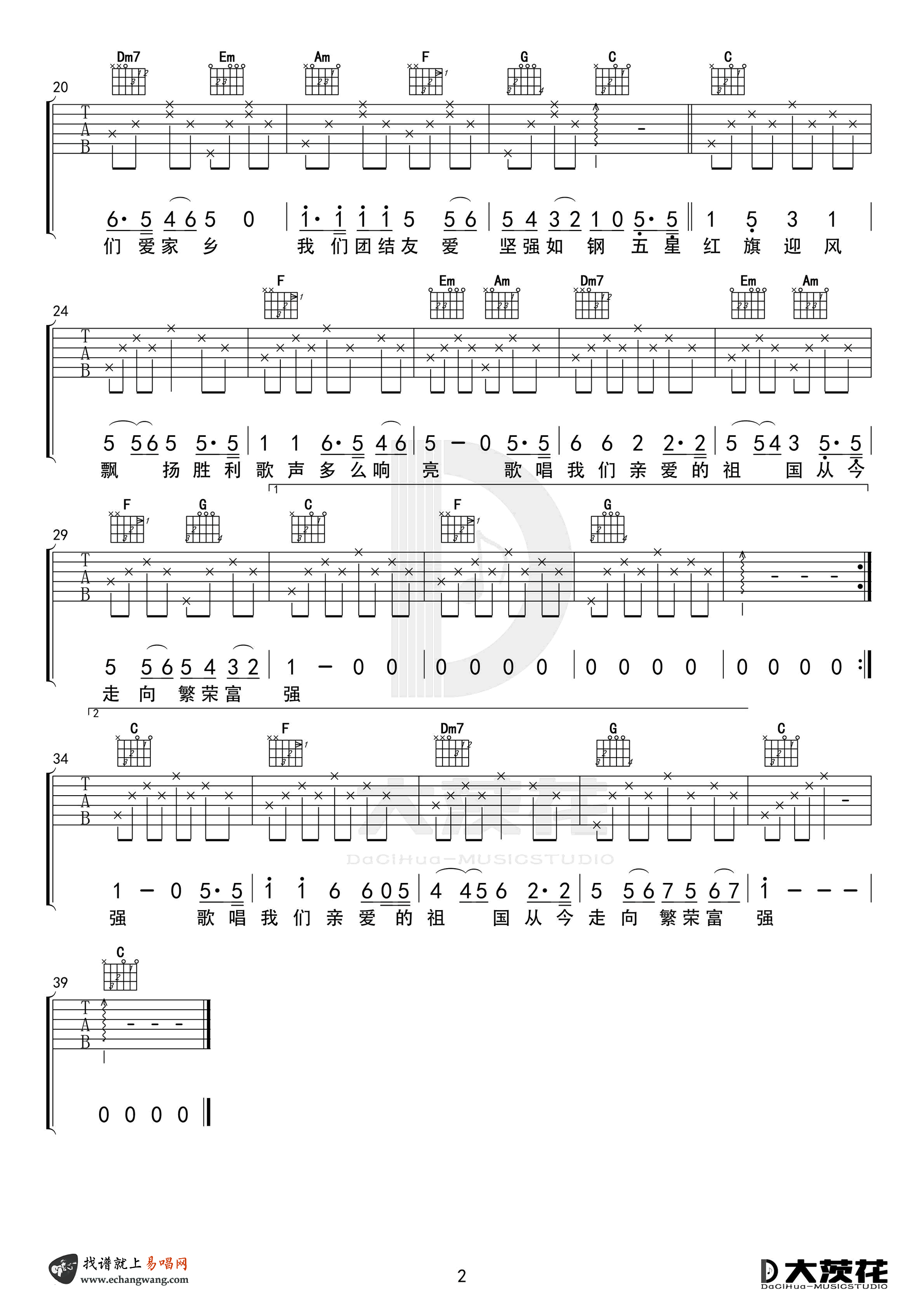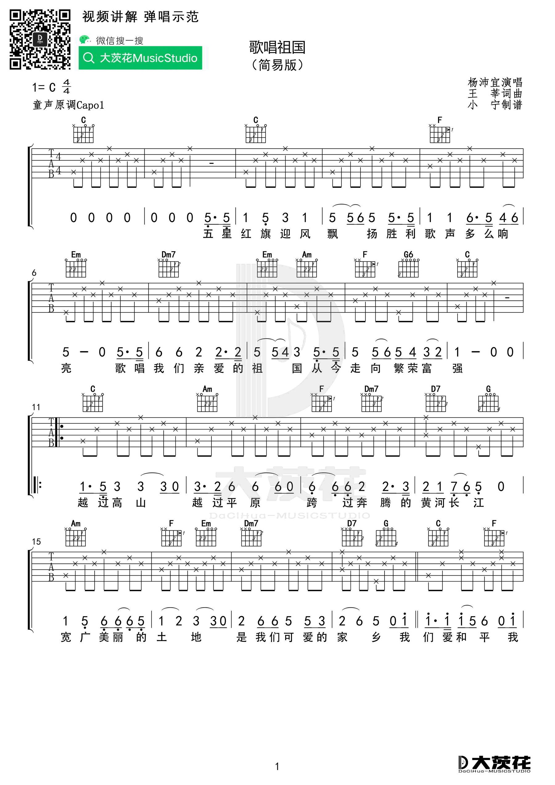 歌唱祖国吉他谱 - 爱国歌曲 - 吉他弹唱谱