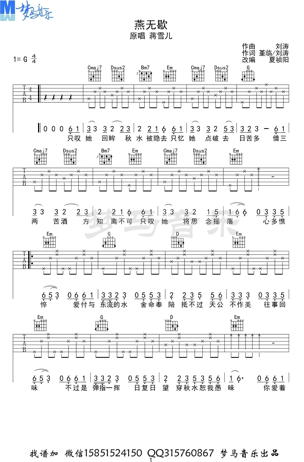 曲谱介绍: 蒋雪儿/是七叔呢《燕无歇》吉他弹唱谱,共有3张高清图谱。