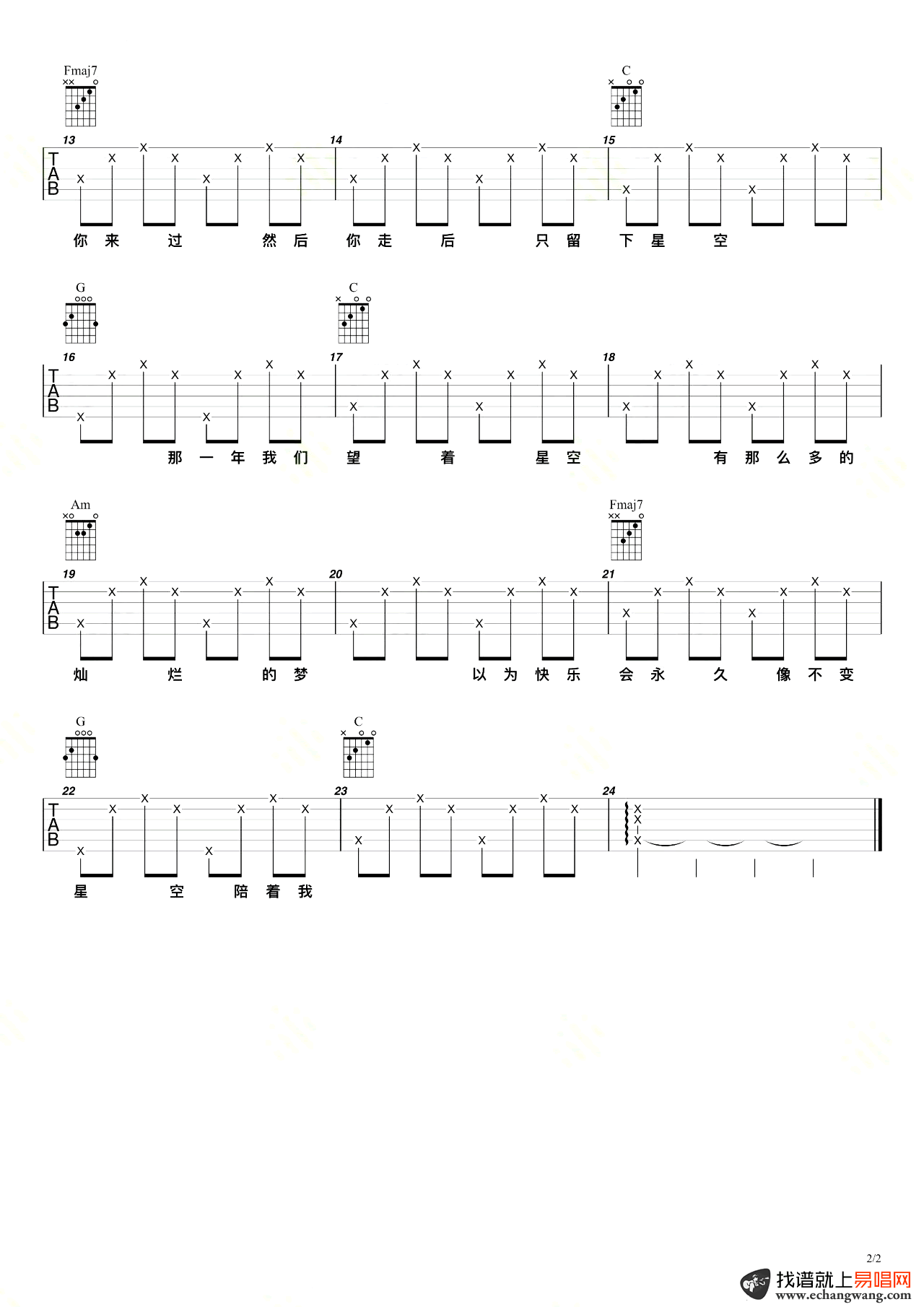 星空吉他谱 - 五月天 - 吉他弹唱谱
