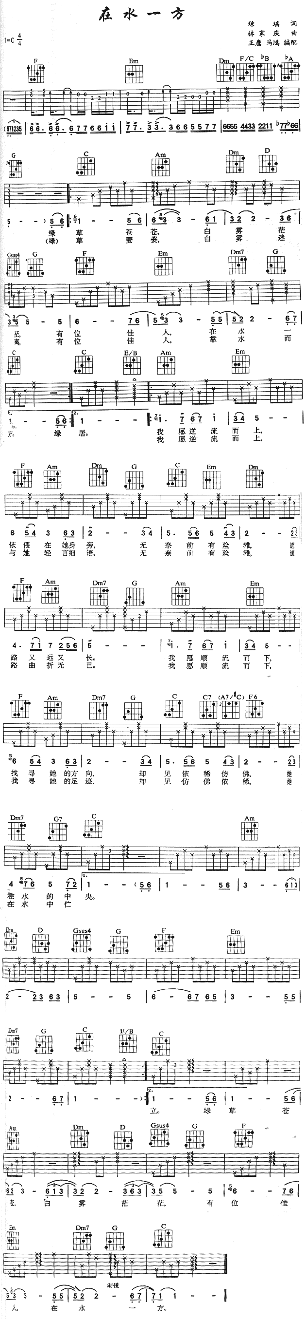 在水一方吉他谱 - 吉他弹唱谱
