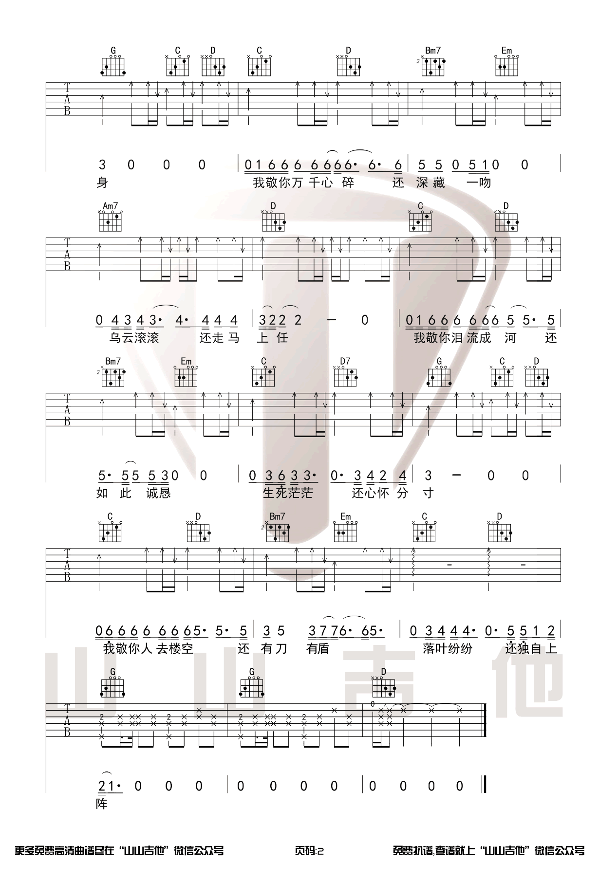 当前位置:琴谱网>吉他弹唱>敬你