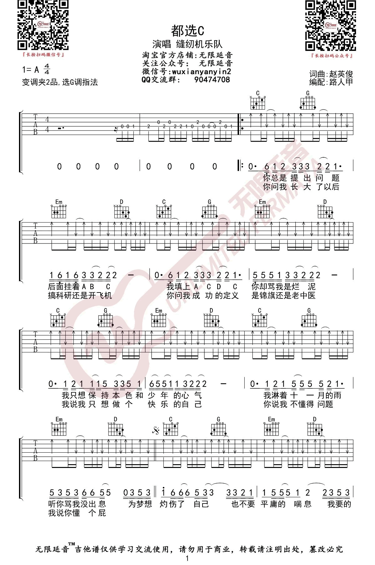 都选C吉他谱 - 缝纫机乐队 - 吉他弹唱谱