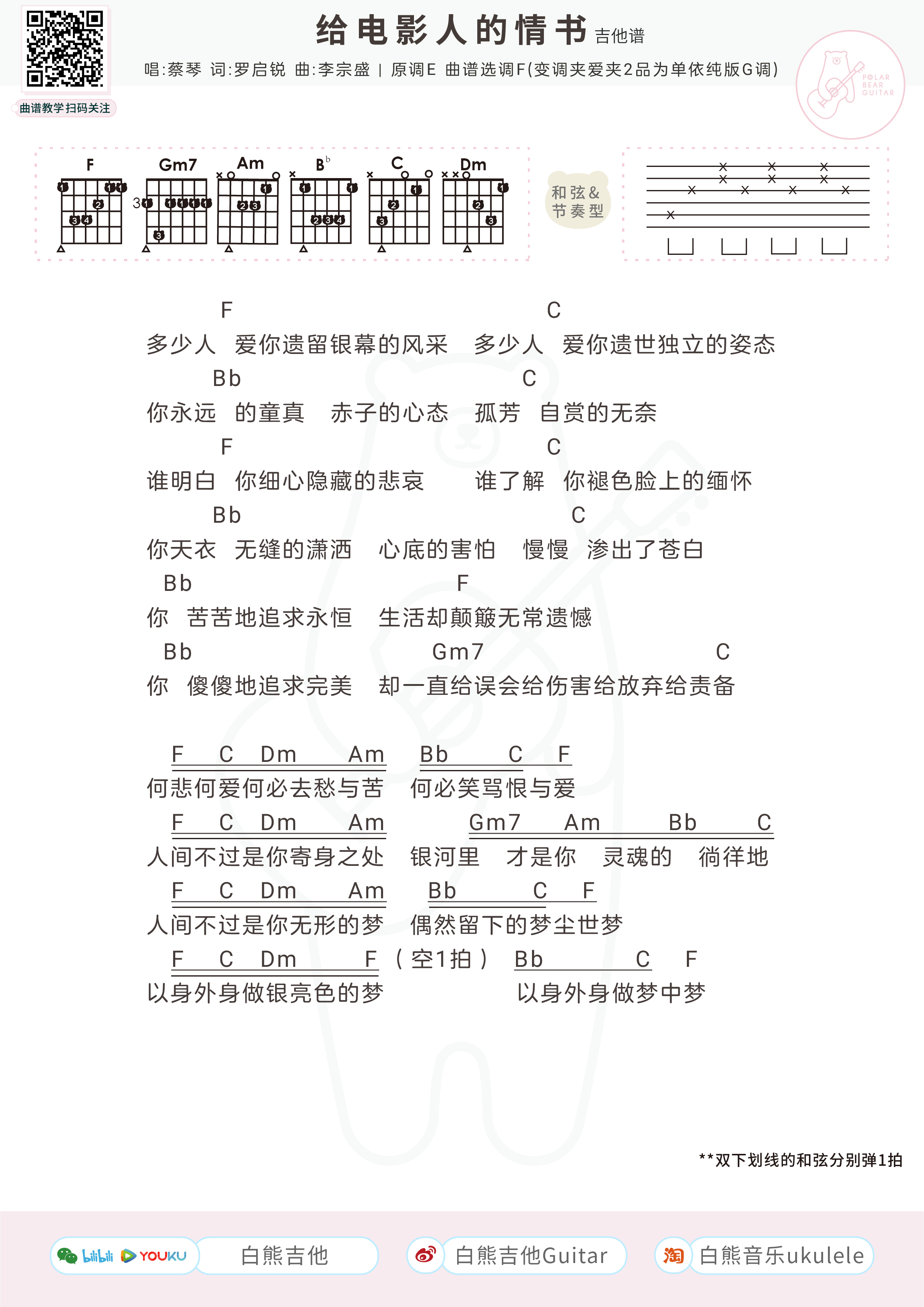 当前位置:琴谱网>吉他弹唱>给电影人的情书+尤克里里