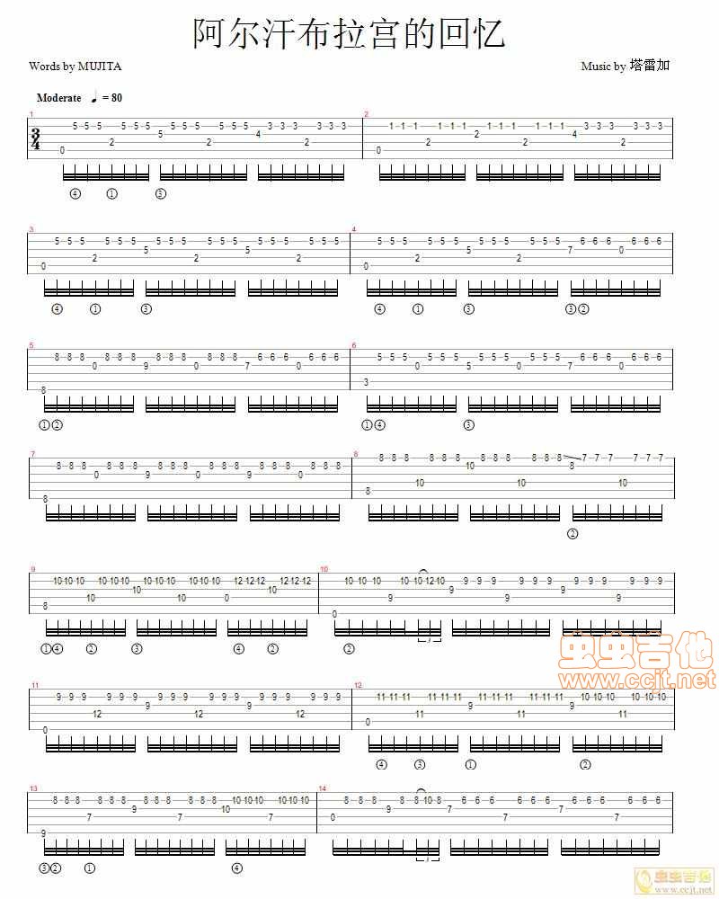 当前位置:琴谱网>吉他弹唱>阿尔汗布拉宫的回忆