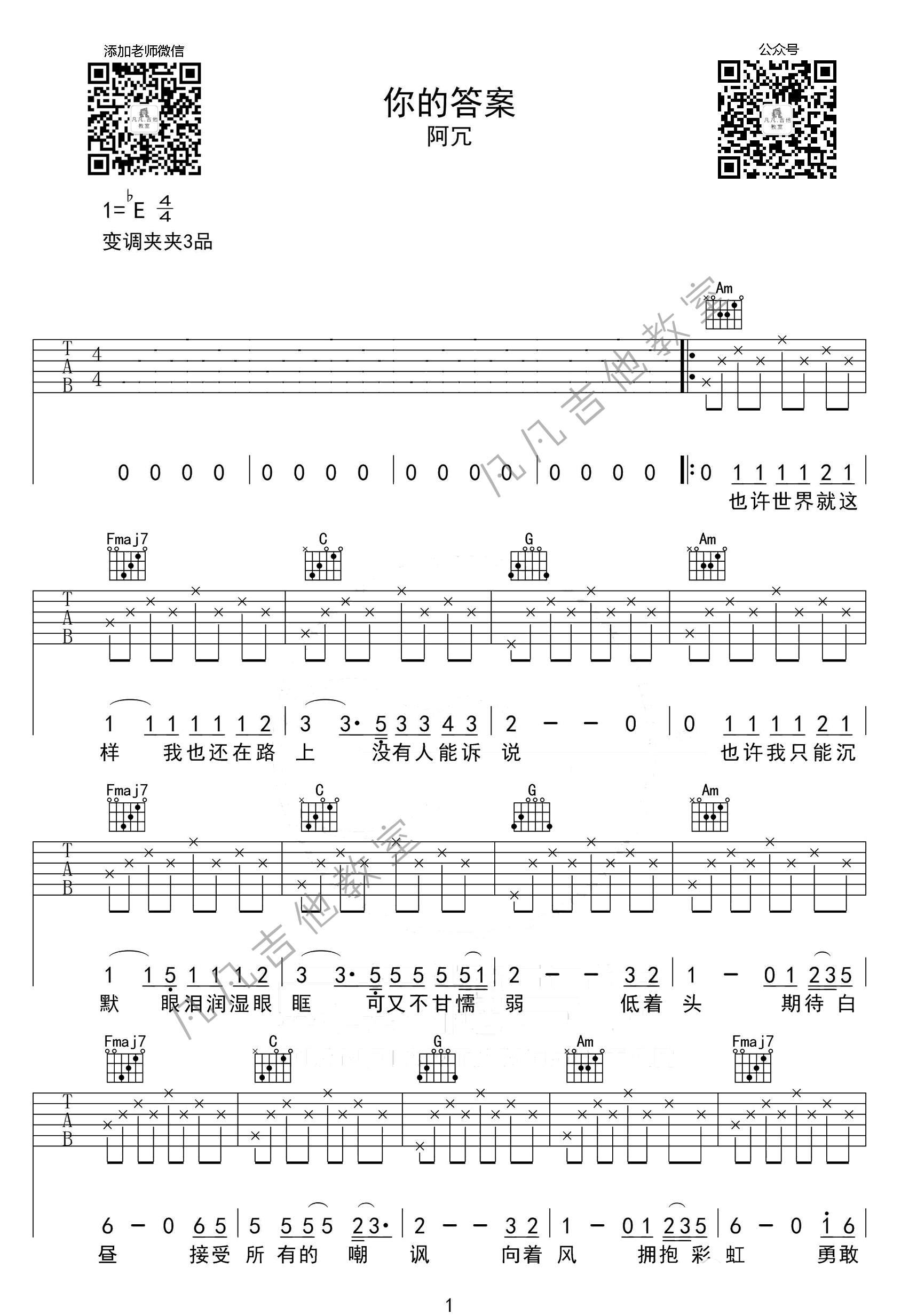 你的答案吉他谱 - 阿冗 - 吉他弹唱谱