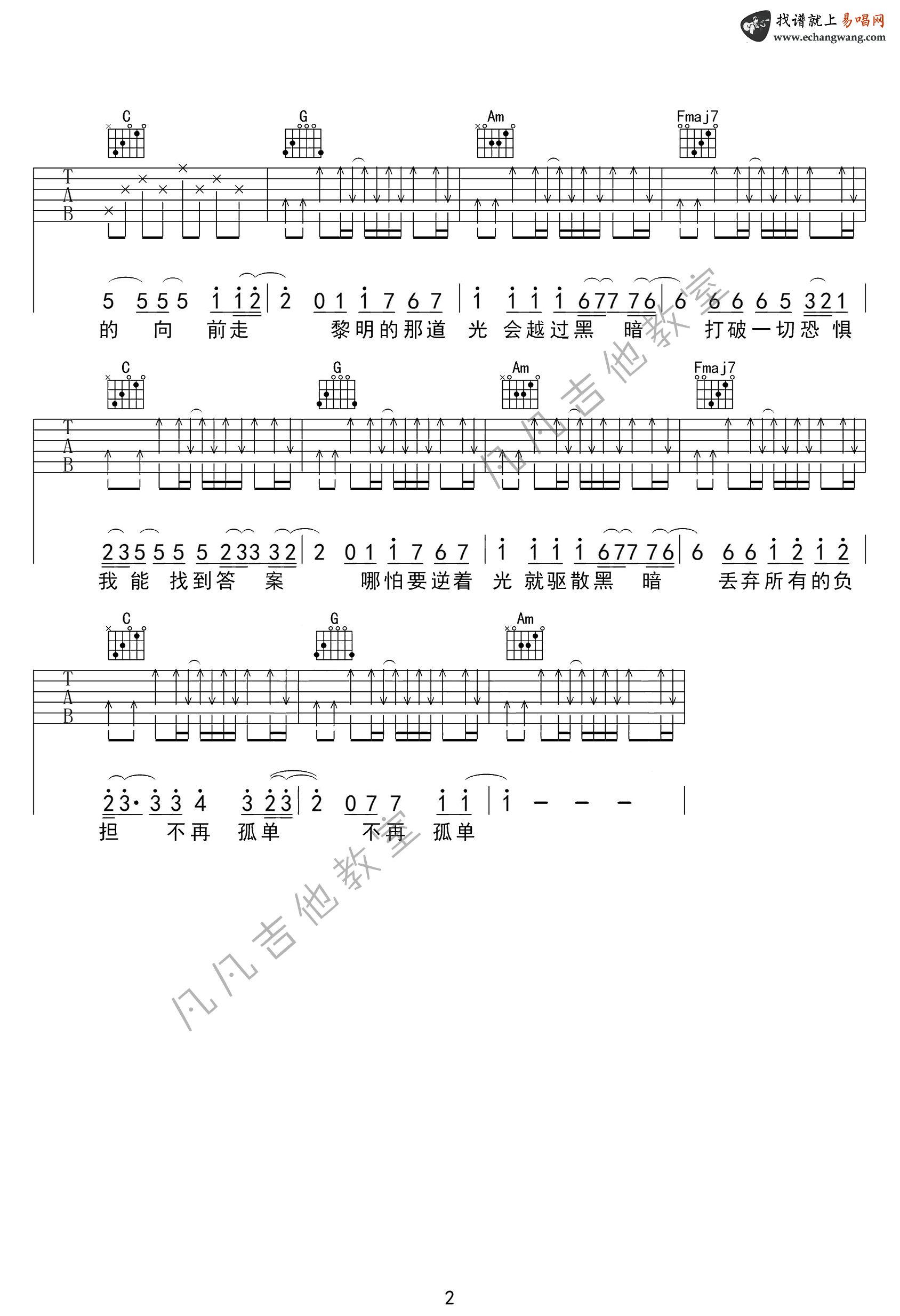 曲谱介绍: 阿冗《你的答案》吉他弹唱谱,共有2张高清图谱,免翻页排版设计。