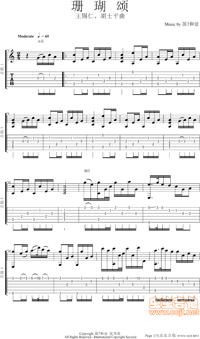 当前位置:琴谱网>吉他弹唱>珊瑚颂(属7和弦版)GTP