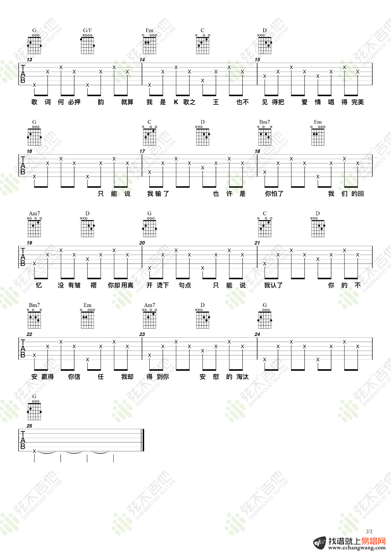 当前位置:琴谱网>吉他弹唱>淘汰