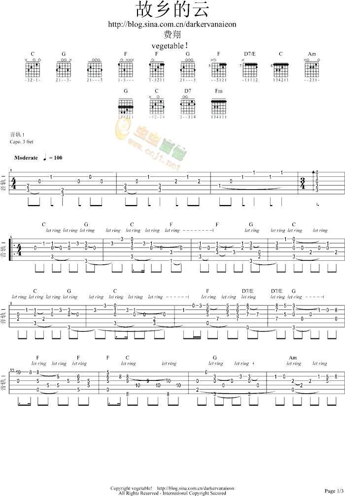 当前位置:琴谱网>吉他独奏>故乡的云