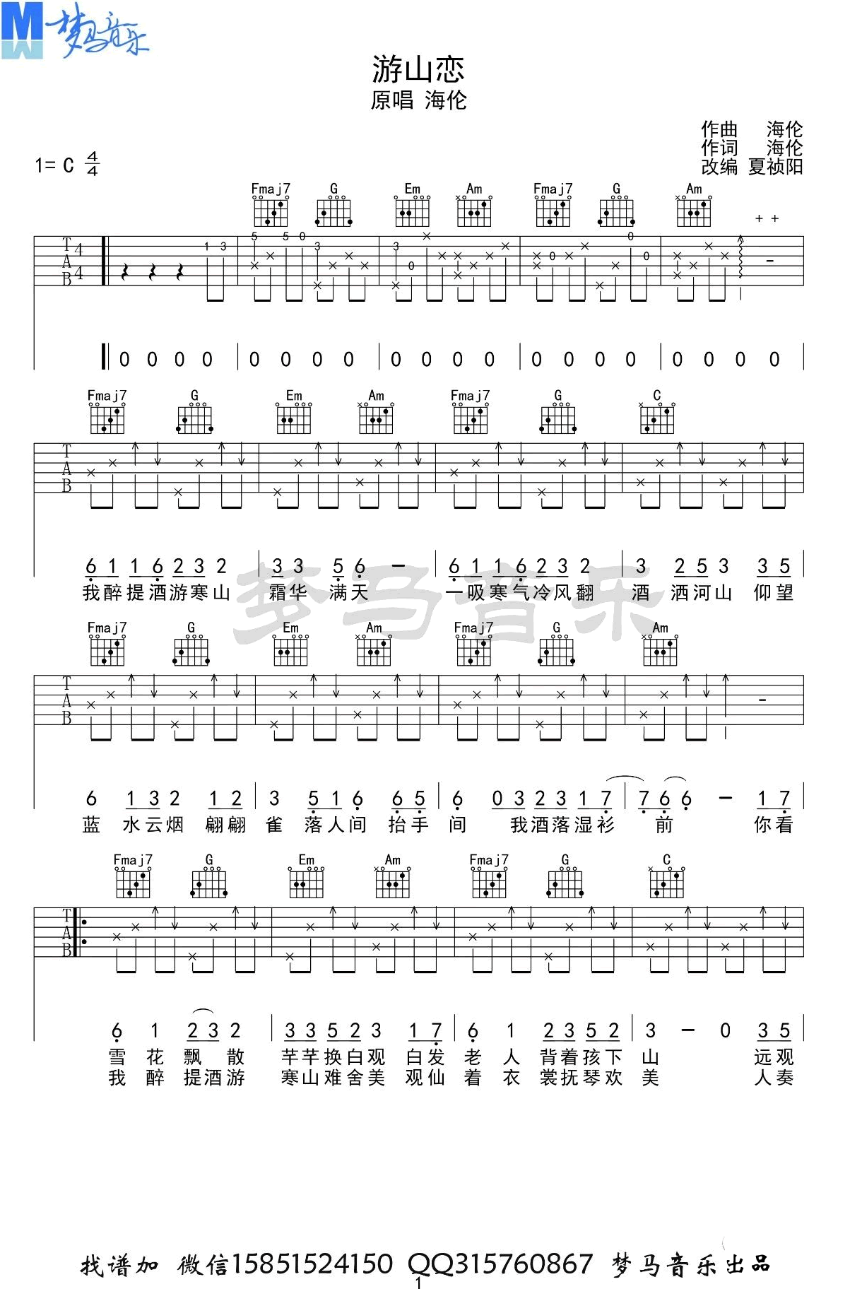 当前位置:琴谱网>吉他弹唱>游山恋C调