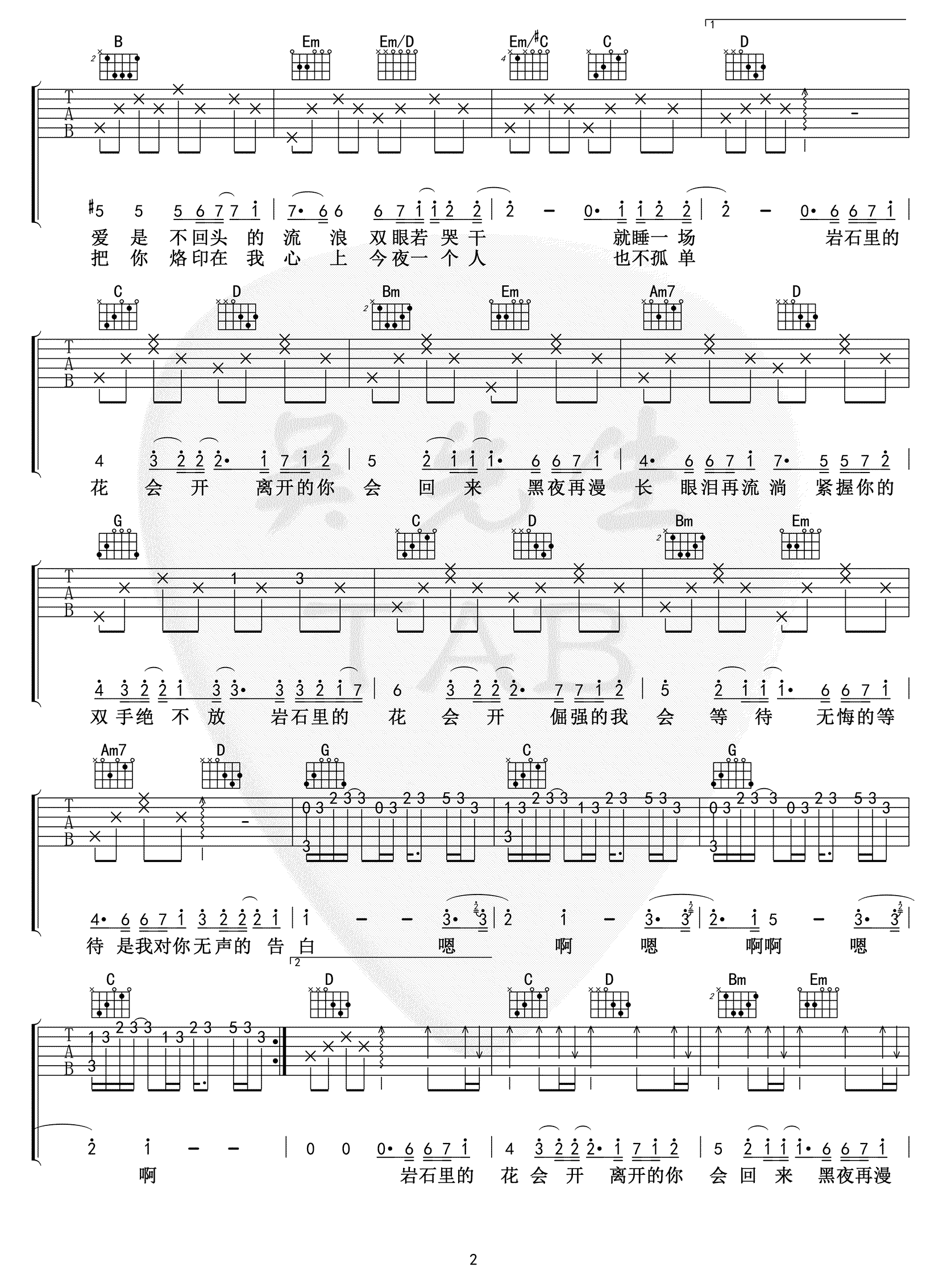 当前位置:琴谱网>吉他弹唱>岩石里的花