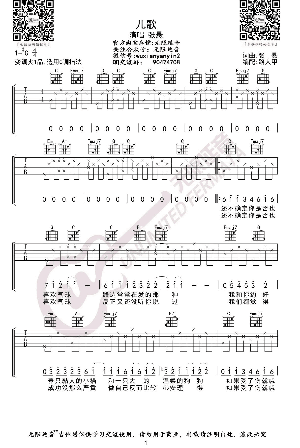 曲谱介绍: 张悬《张悬儿歌》吉他弹唱谱,共有3张高清图谱。