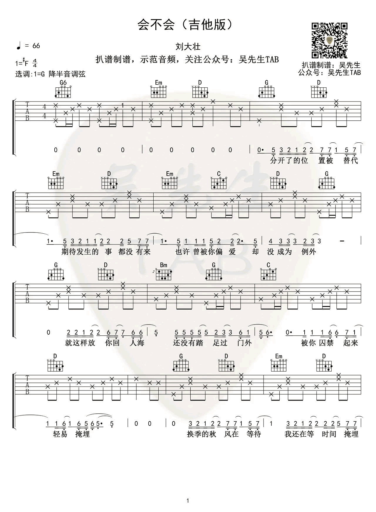 当前位置:琴谱网>吉他弹唱>会不会
