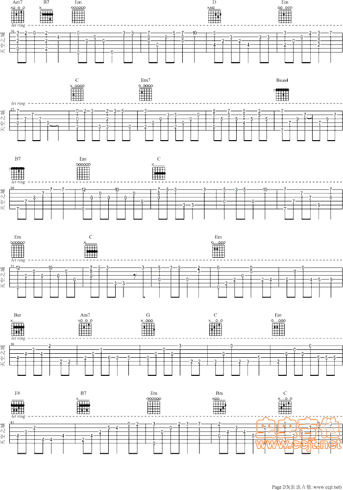 天空之城不调弦版吉他谱 - 吉他弹唱谱