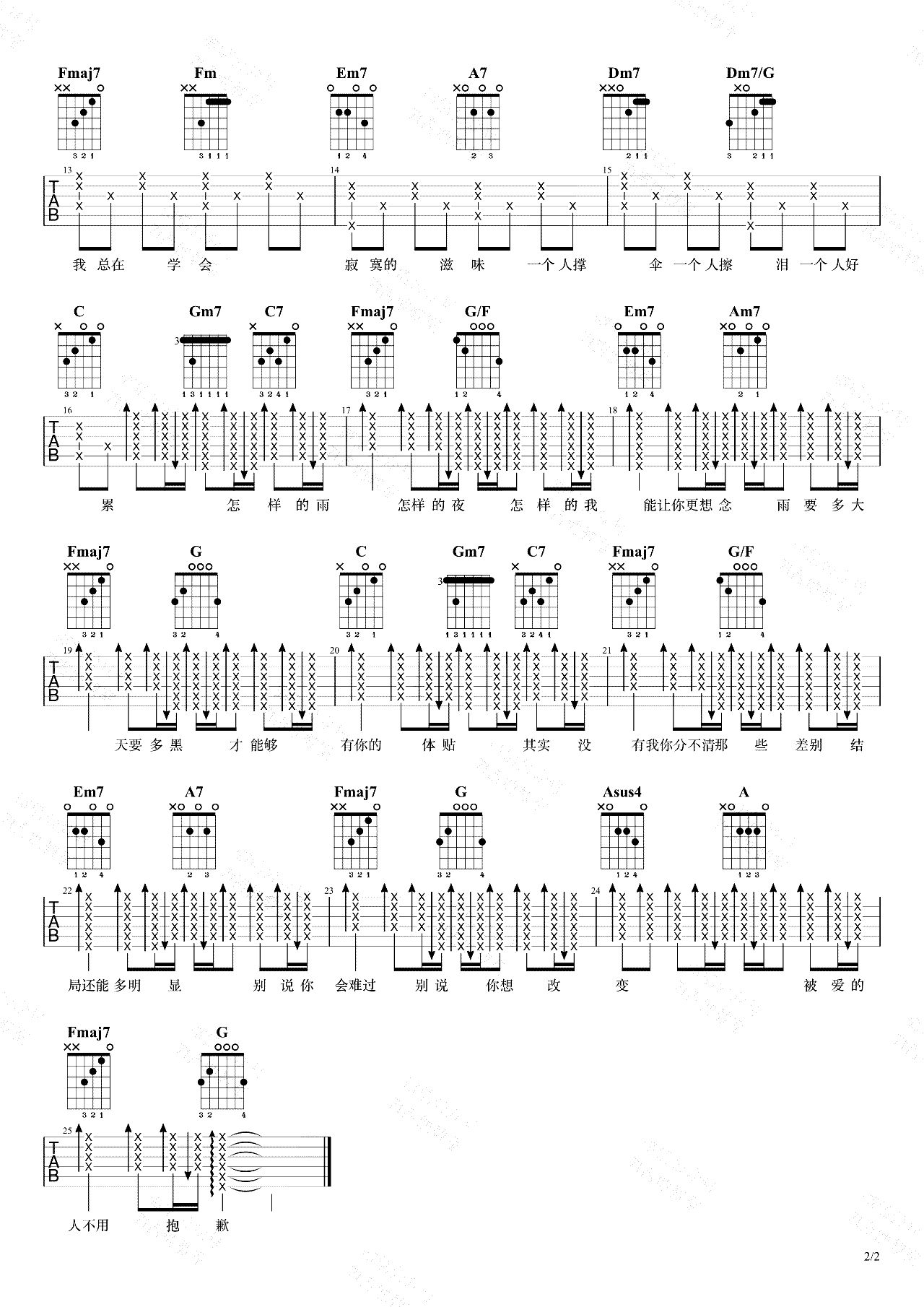 下雨天吉他谱 - 南拳妈妈 - 吉他弹唱谱