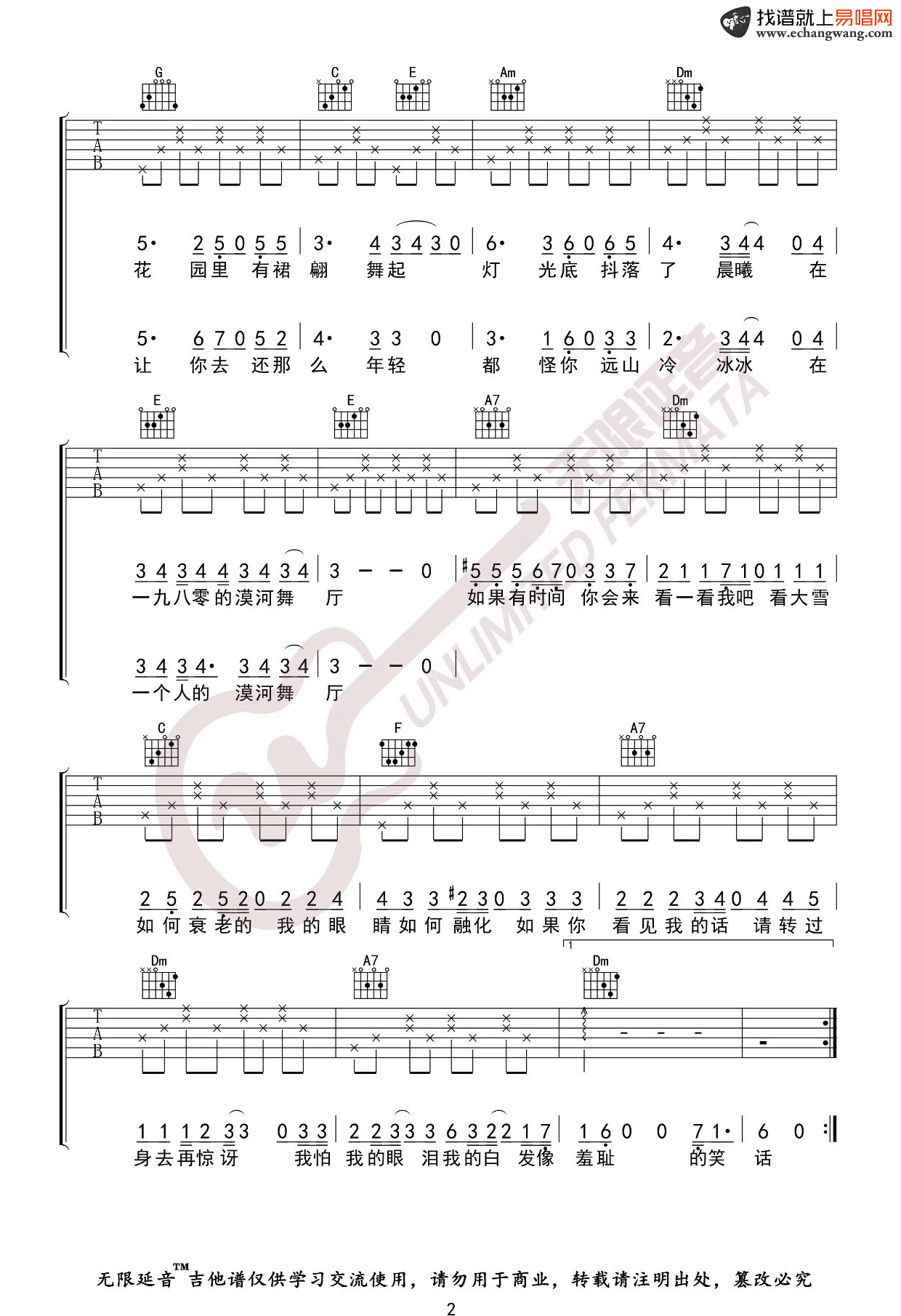 当前位置:琴谱网>吉他弹唱>漠河舞厅