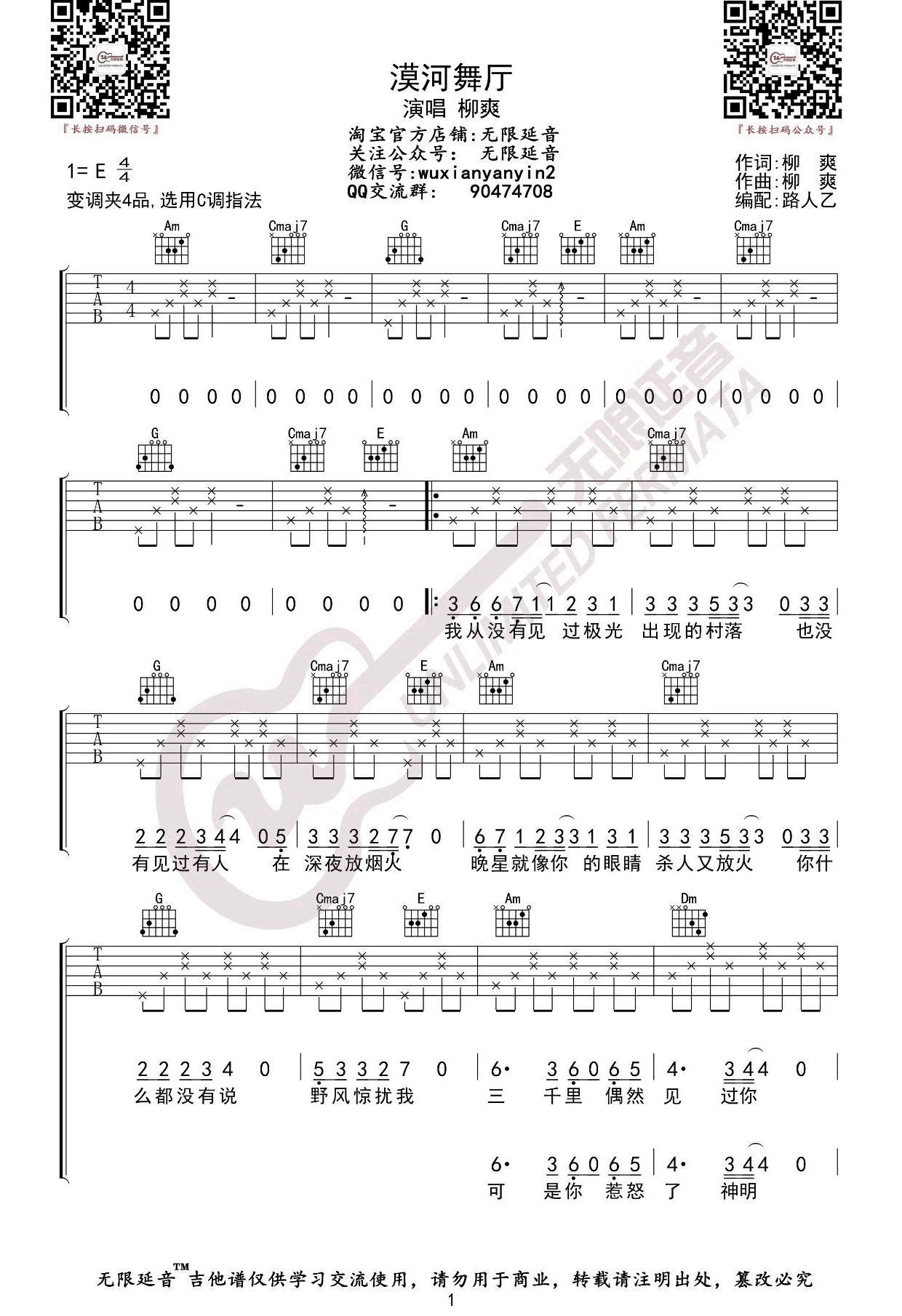 漠河舞厅吉他谱 - 柳爽 - 吉他弹唱谱