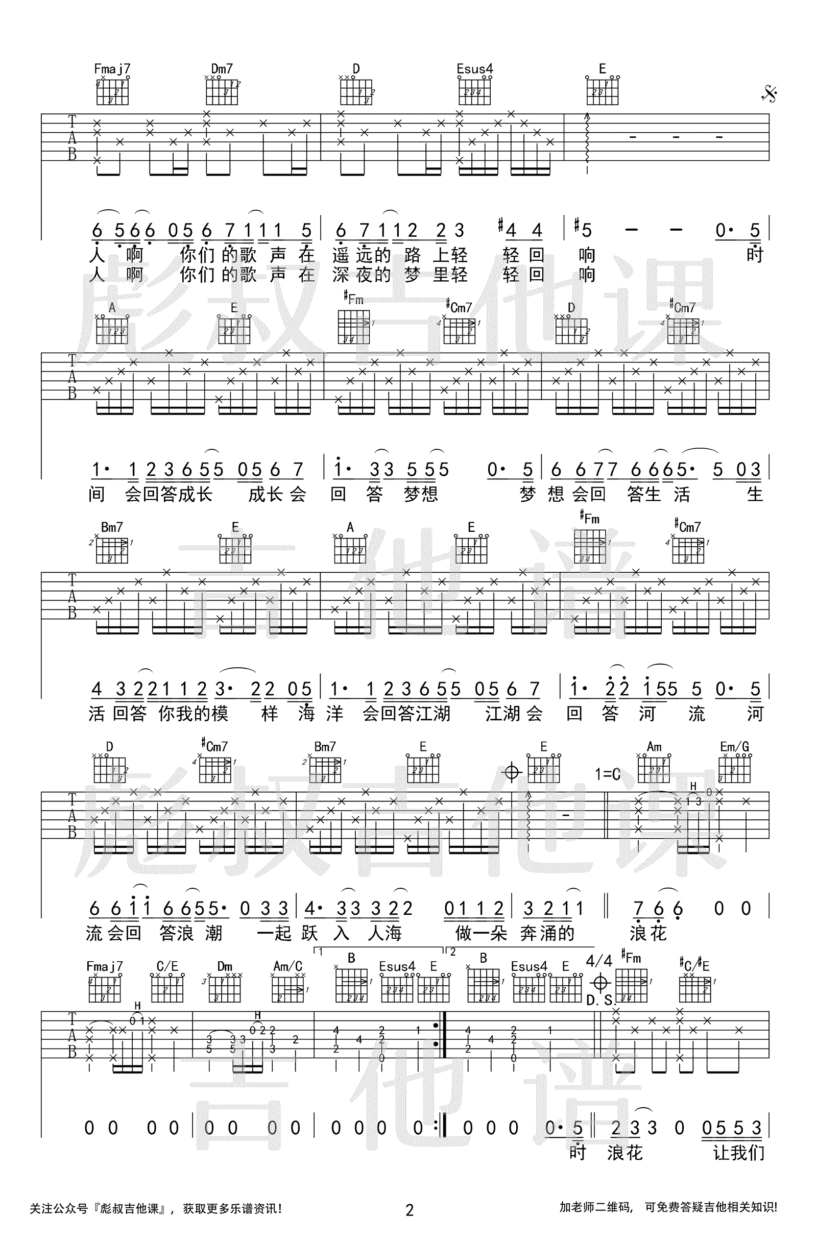 曲谱介绍: 毛不易《入海》,C调指法简单版编配,capo夹三品。一首献给即将或已经毕业的人们的励志歌曲,入海六线谱,三张高清图片谱。彪叔吉他课制谱分享,琴谱网网上传更新。 毕业是每个人生命中必然经历的一刻,希望这首歌能够温暖关于彼此的记忆。让我们怀揣自己的理想和热情,跃入人海,成为一朵朵奔涌的浪花。愿我们在各自的河流里奔涌,活出自己的精彩。