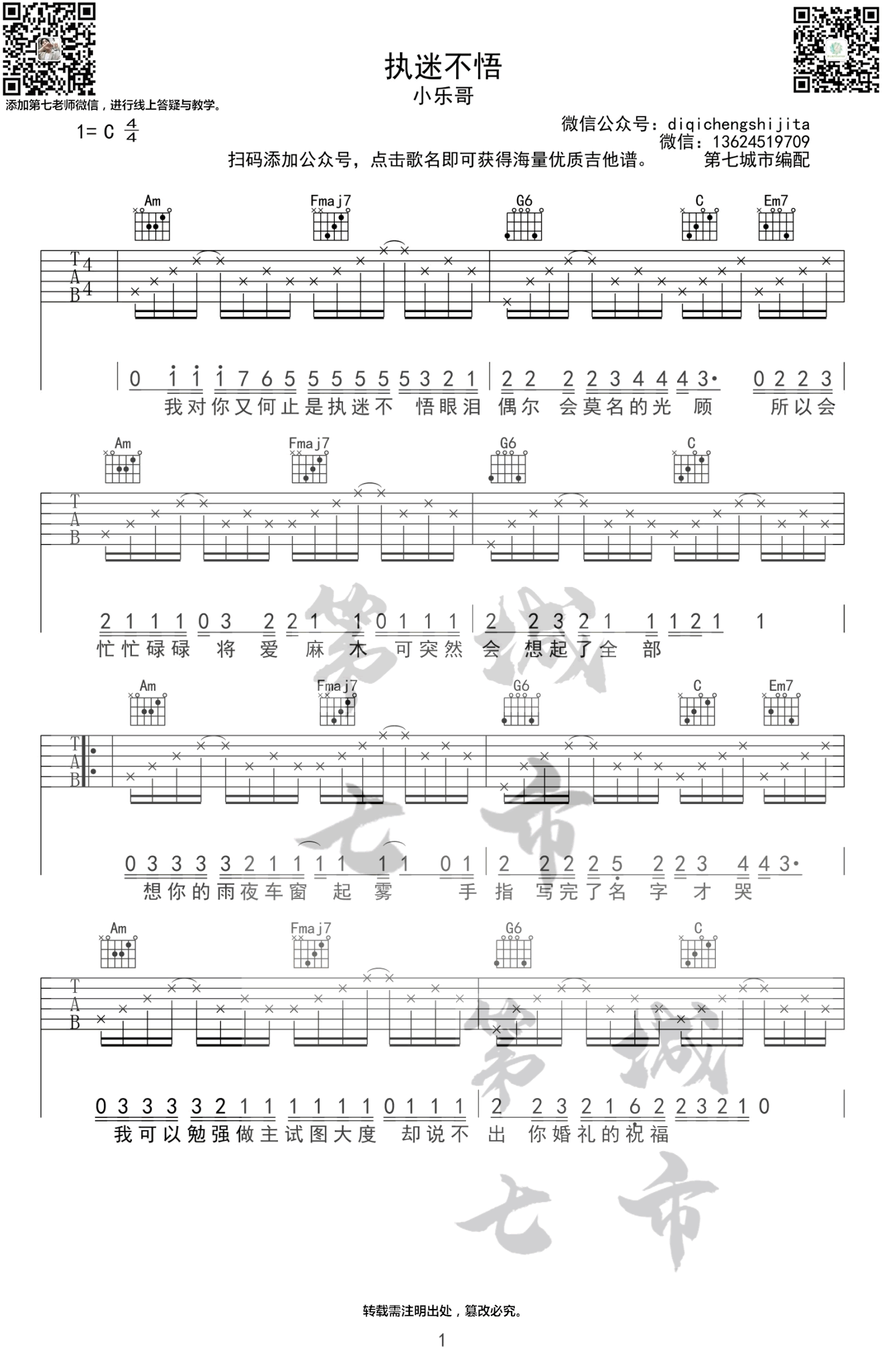 执迷不悟吉他谱 - 小乐哥 - 吉他弹唱谱