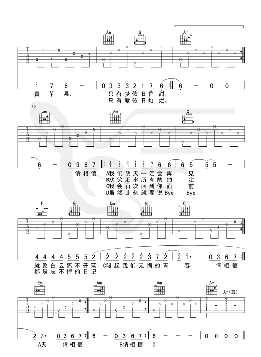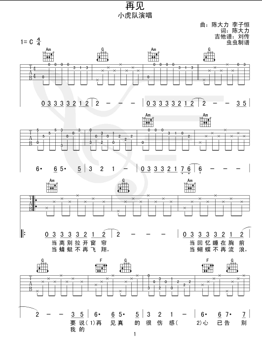 再见吉他谱 - 吉他弹唱谱