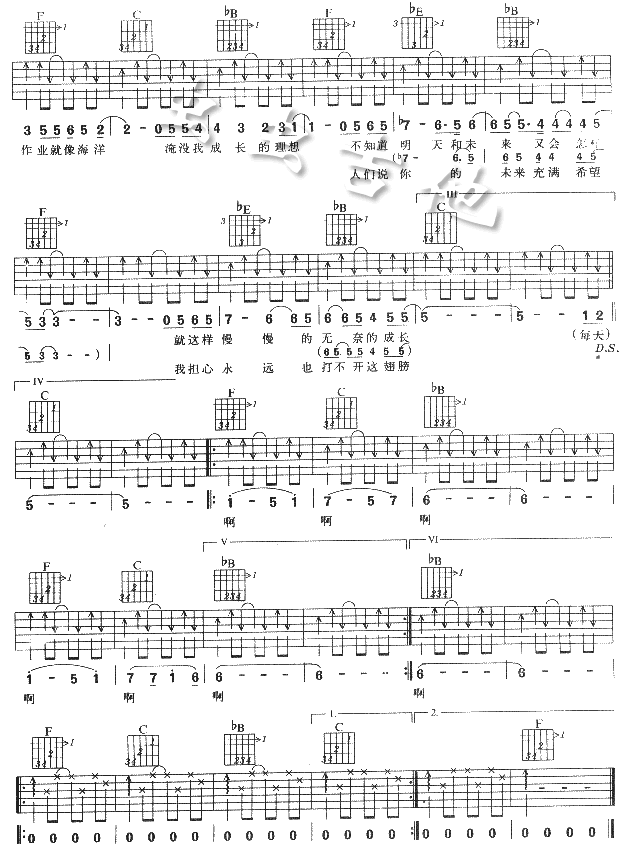 曲谱介绍: 《起飞》吉他弹唱谱,共有2张高清图谱,免翻页排版设计。
