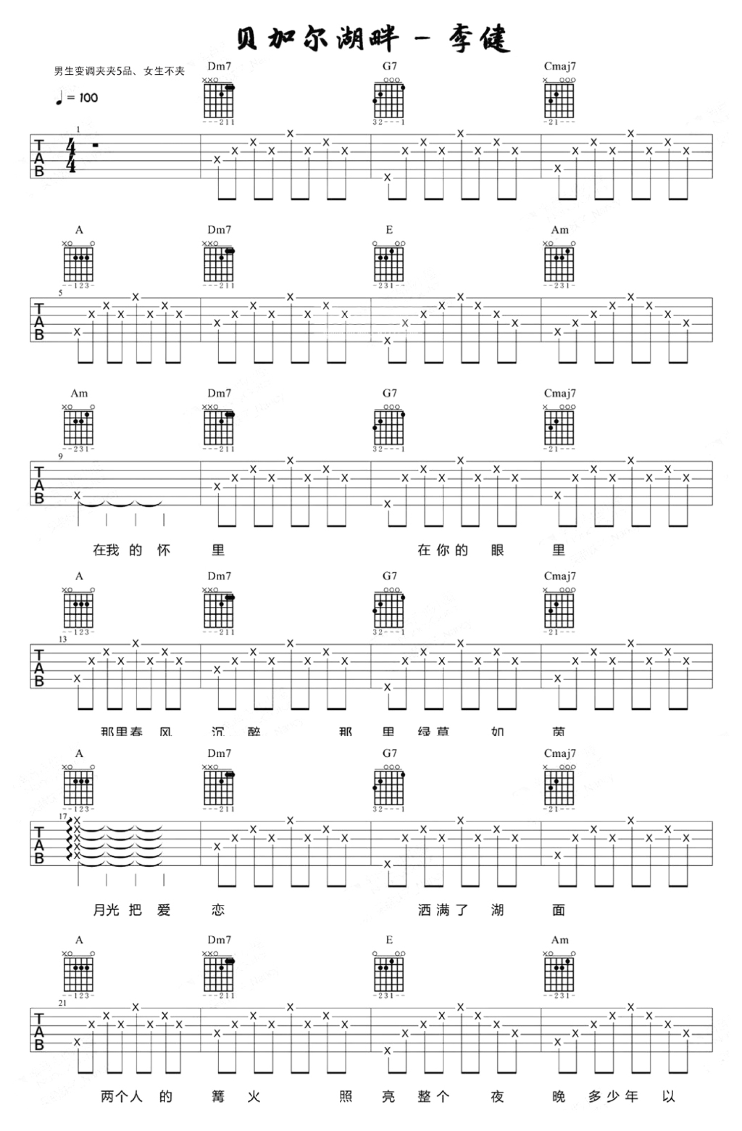曲谱介绍: 李健《贝加尔湖畔》吉他谱_吉他弹唱谱