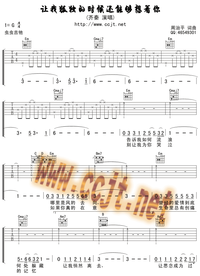 当前位置:琴谱网>吉他弹唱>让我狐独的时候还能够想着你