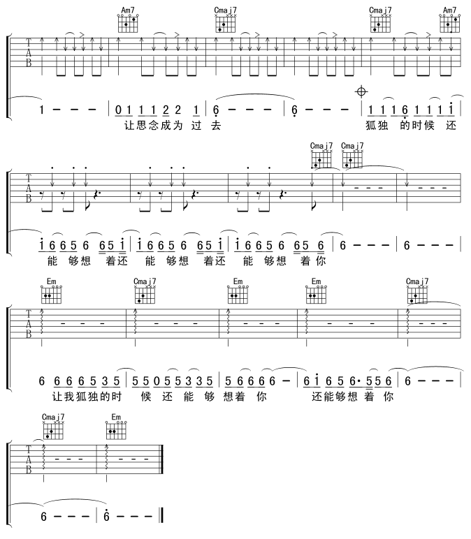 让我狐独的时候还能够想着你吉他谱 - 吉他弹唱谱