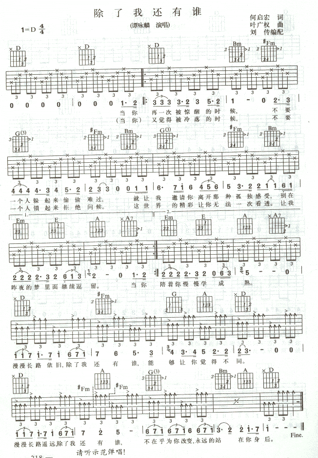 除了我还有谁吉他谱 - 吉他弹唱谱
