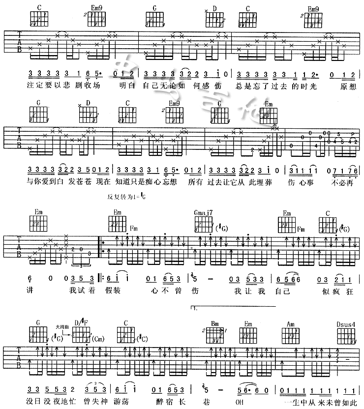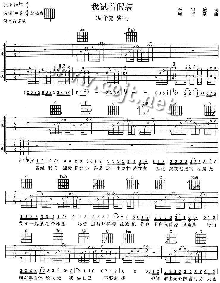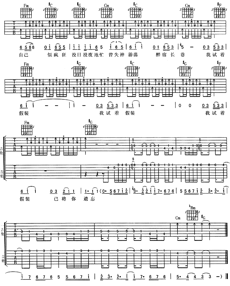 当前位置:琴谱网>吉他弹唱>我试着假装