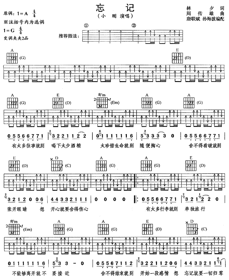 忘记吉他谱 - 吉他弹唱谱