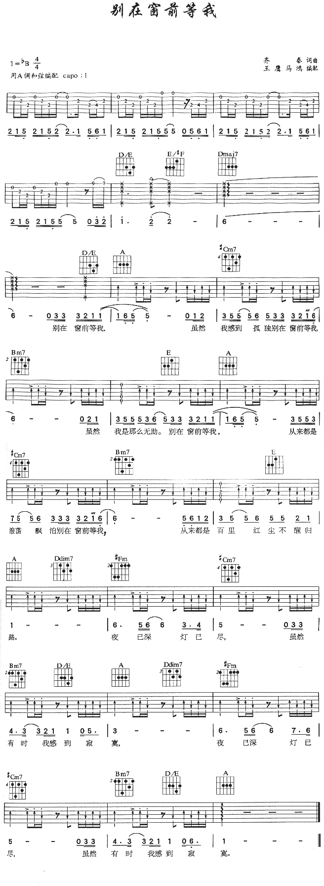 别在窗前等我吉他谱 - 吉他弹唱谱
