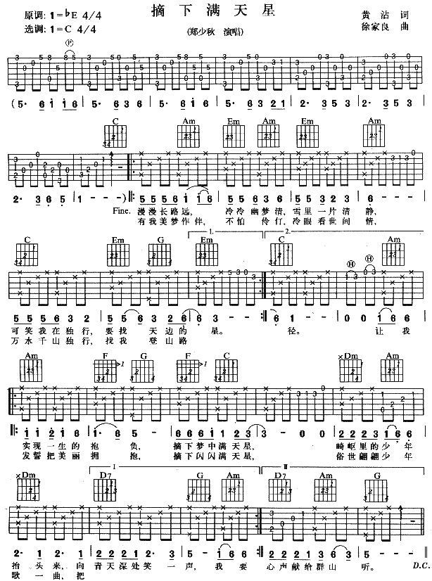 摘下满天星吉他谱 - 吉他弹唱谱