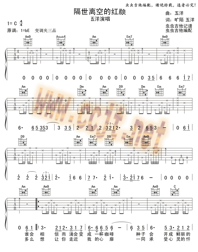 隔世离空的红颜吉他谱 - 吉他弹唱谱