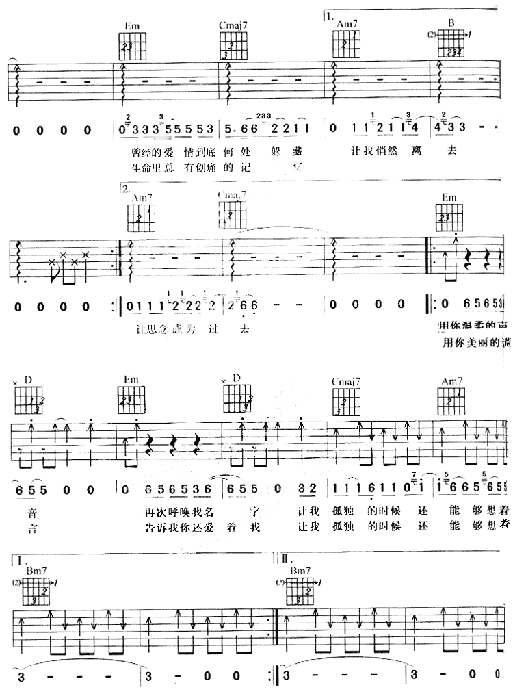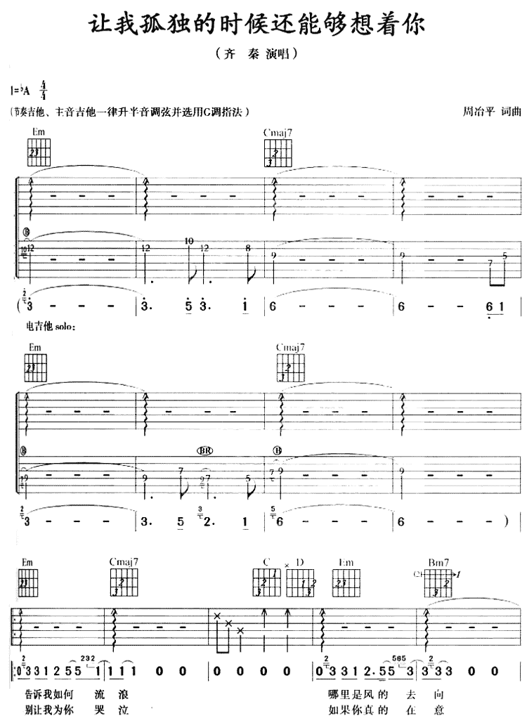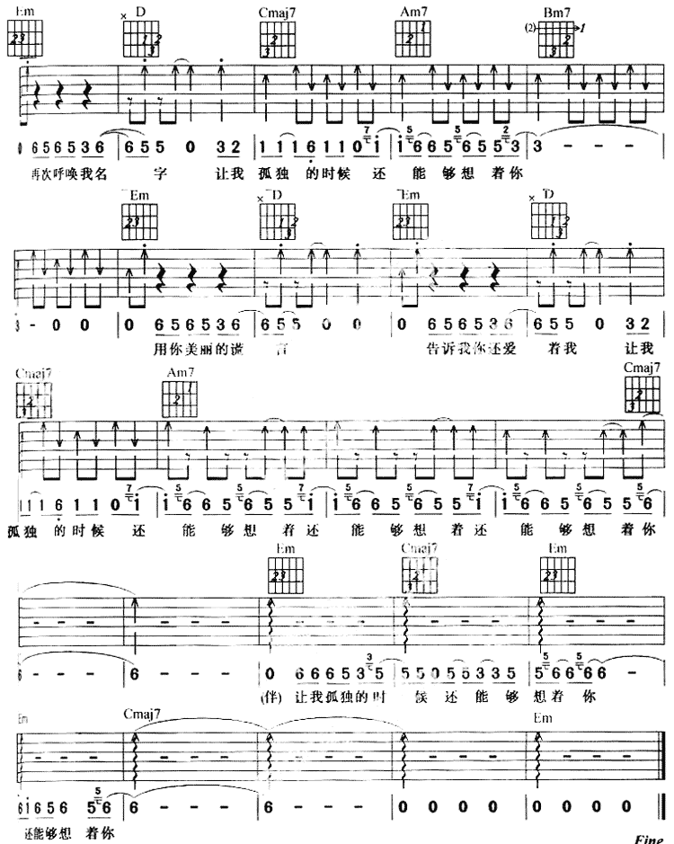 让我狐独的时候还能够想着你吉他谱 - 吉他弹唱谱
