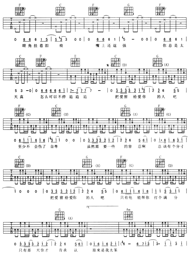 把爱留给爱你的人吉他谱 - 吉他弹唱谱