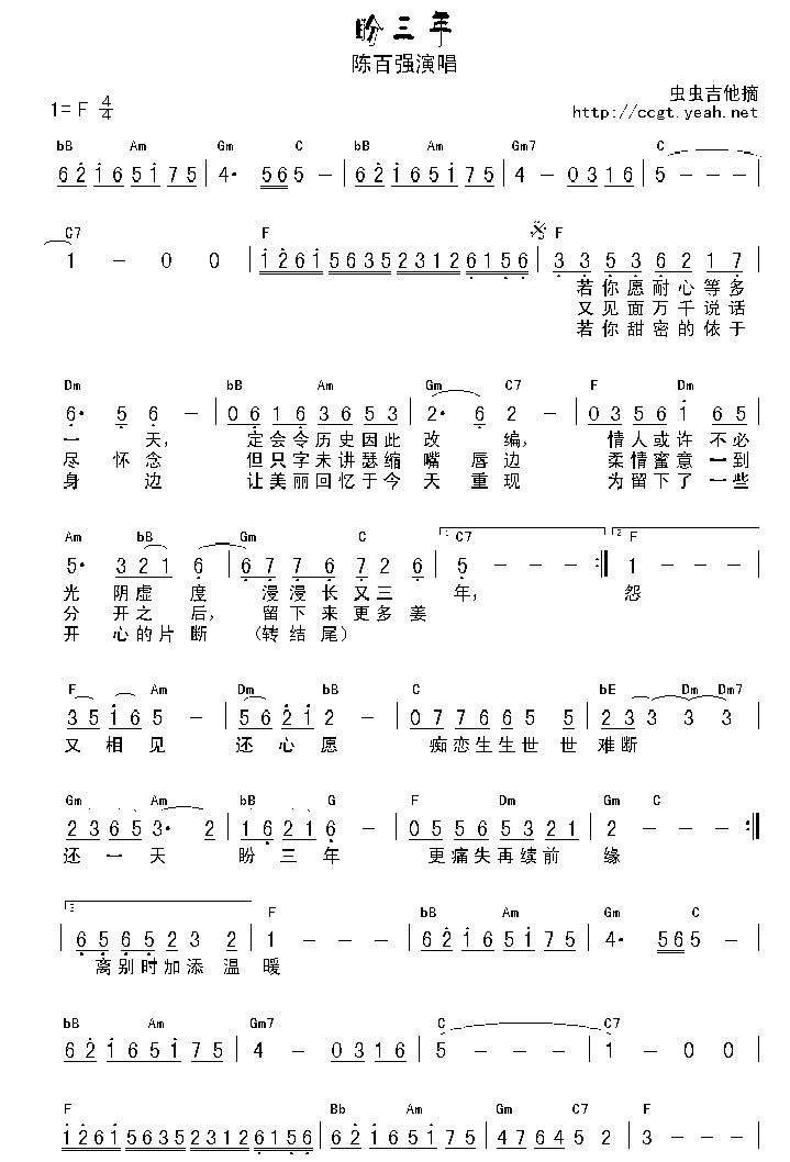 当前位置:琴谱网>吉他弹唱>盼三年