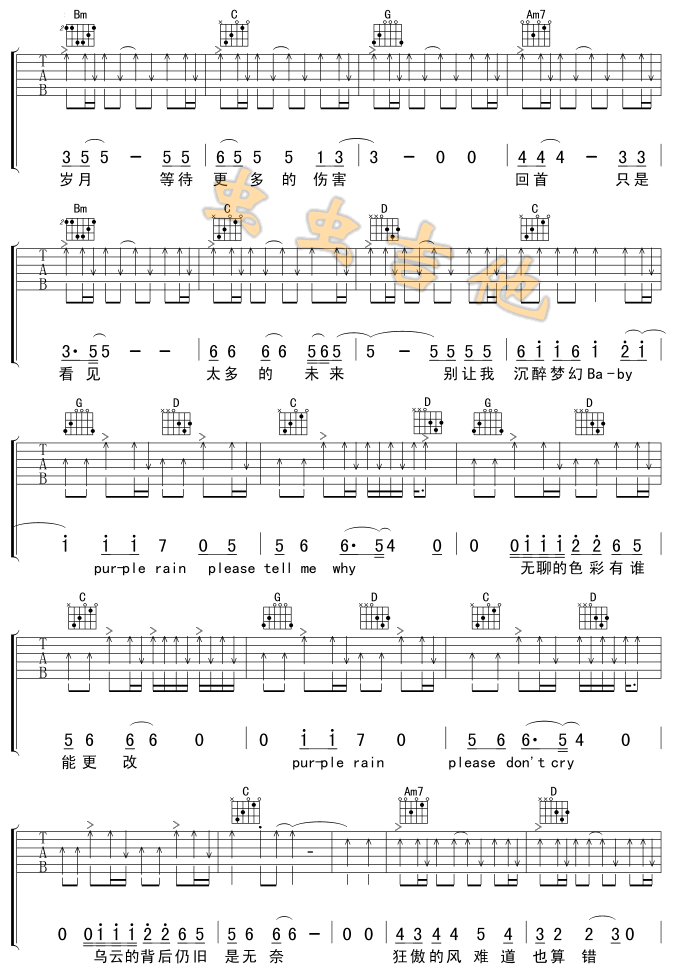 紫雨吉他谱 - 吉他弹唱谱