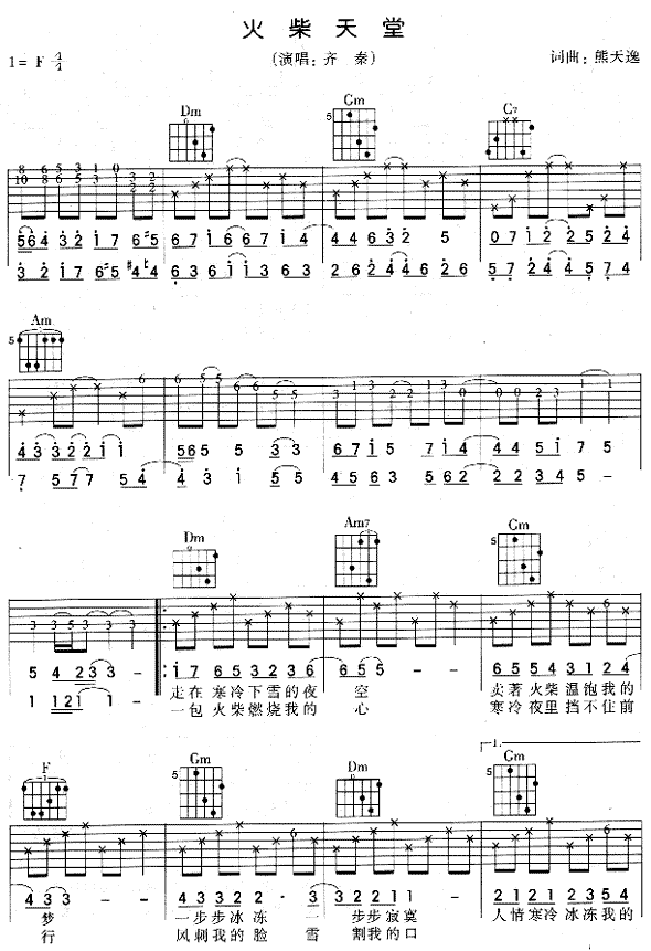 曲谱介绍: 《天堂火柴》吉他弹唱谱,共有4张高清图谱。