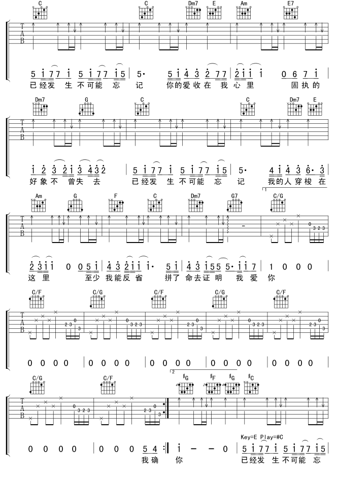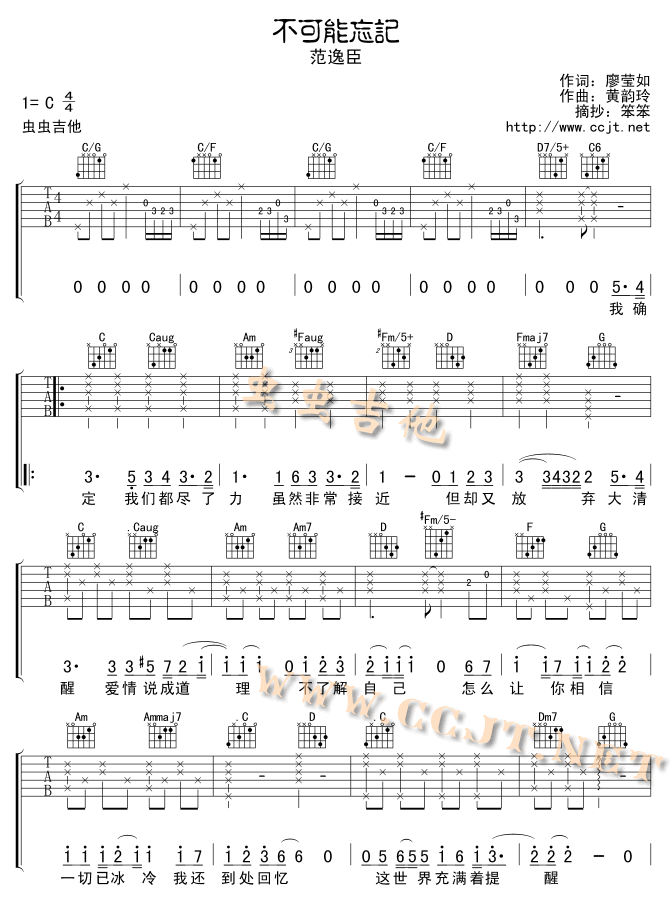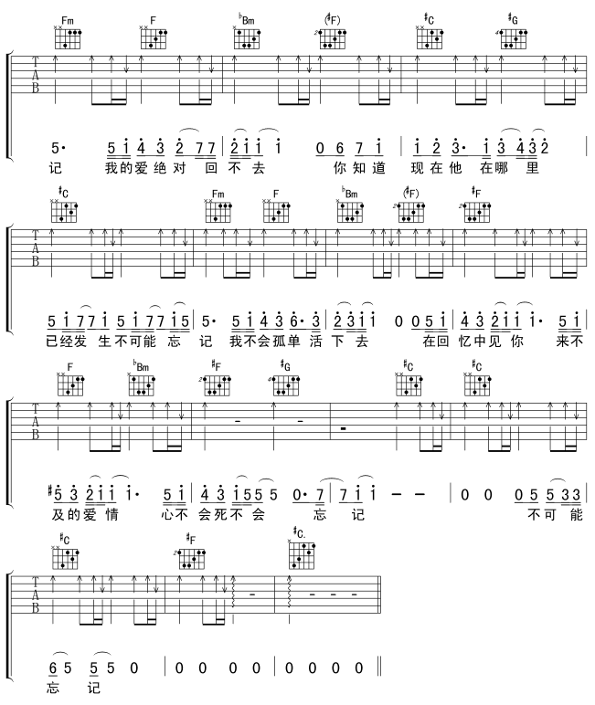 曲谱介绍: 《不可能忘记》吉他弹唱谱,共有3张高清图谱。