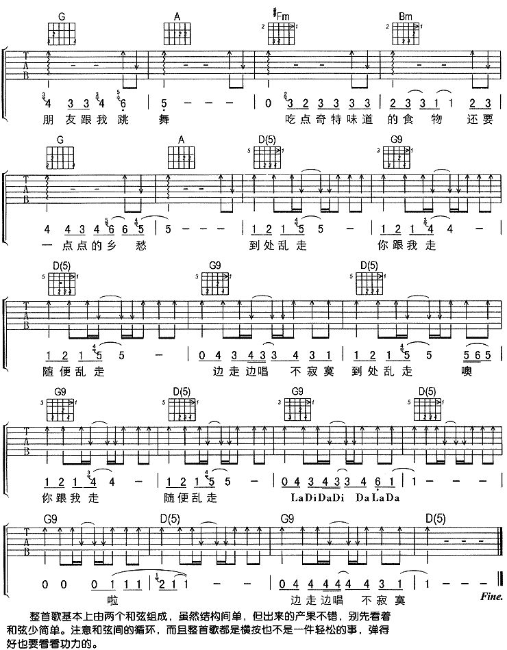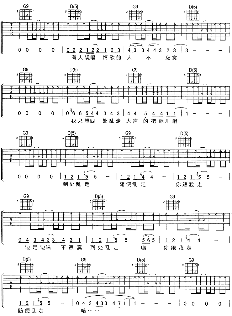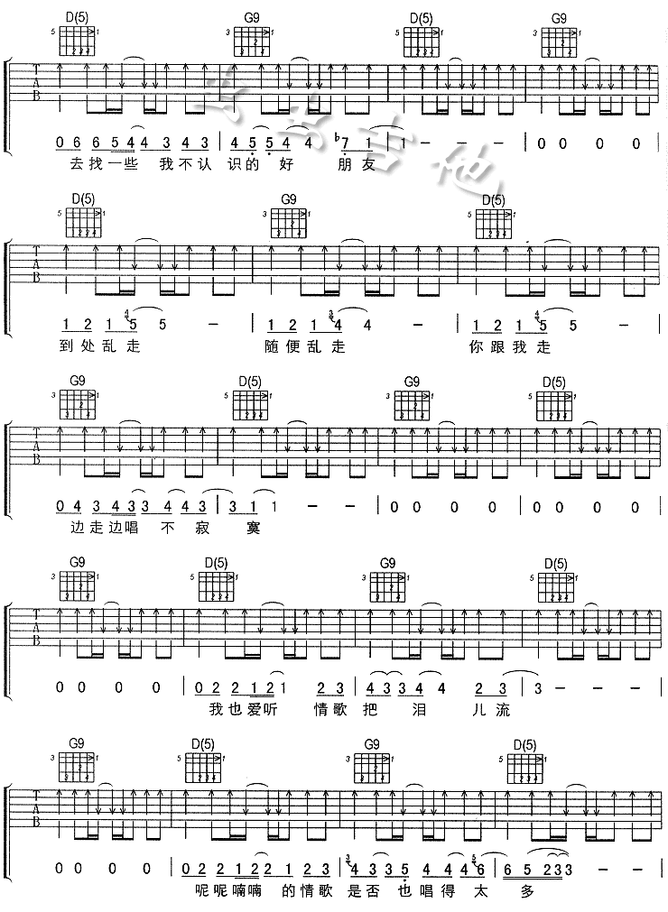 到处乱走吉他谱 - 吉他弹唱谱